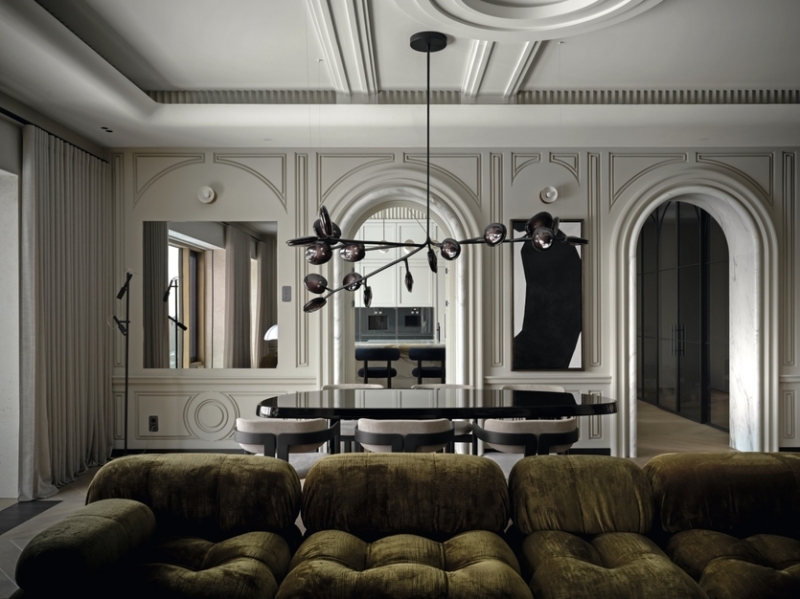 В интерьере этой московской квартиры ощущаются одновременно и легкость, и весомость. Они не конфликтуют, а помогают создать комфортное пространство для жизни и подчеркнуть высокий статус владельцев.